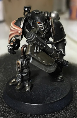 I love the thought of an Astartes whose only friends are robots. I got some more painting done on my Legion Consul Praevian. I'm not quite done yet, but he's looking pretty bad ass. It seems like a very lone wolf type character, which is unusual in the fluff for space marines.
